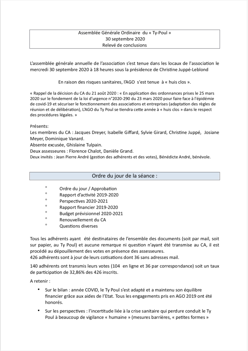 Le PV de l’assemblée générale 2020 du Ty Poul