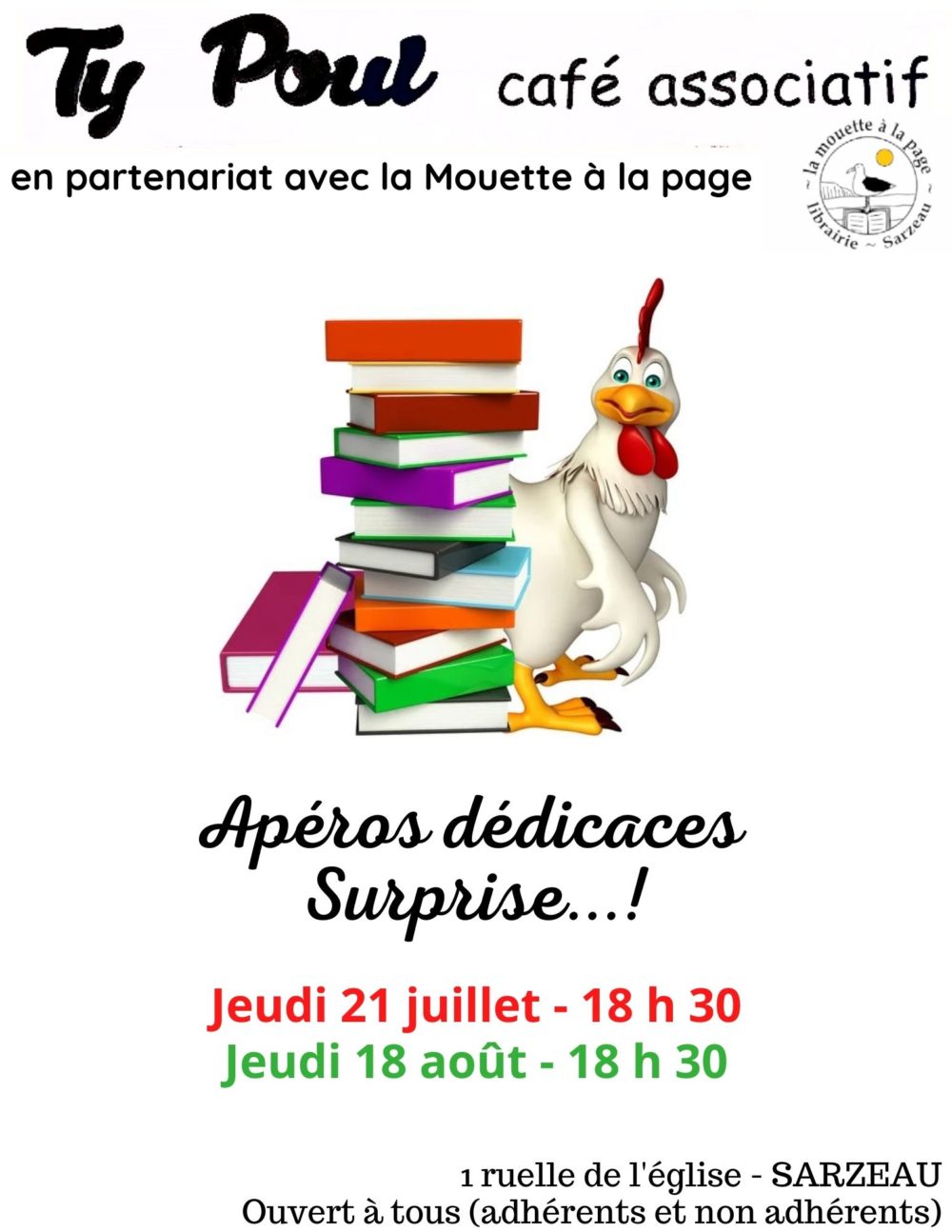 *SURPRISE* les 21 juillet & 18 Août à 18h30Avec notre voisine « la Mouette à la Page », on se fait 2 apéros-dédicaces…encore surprise.