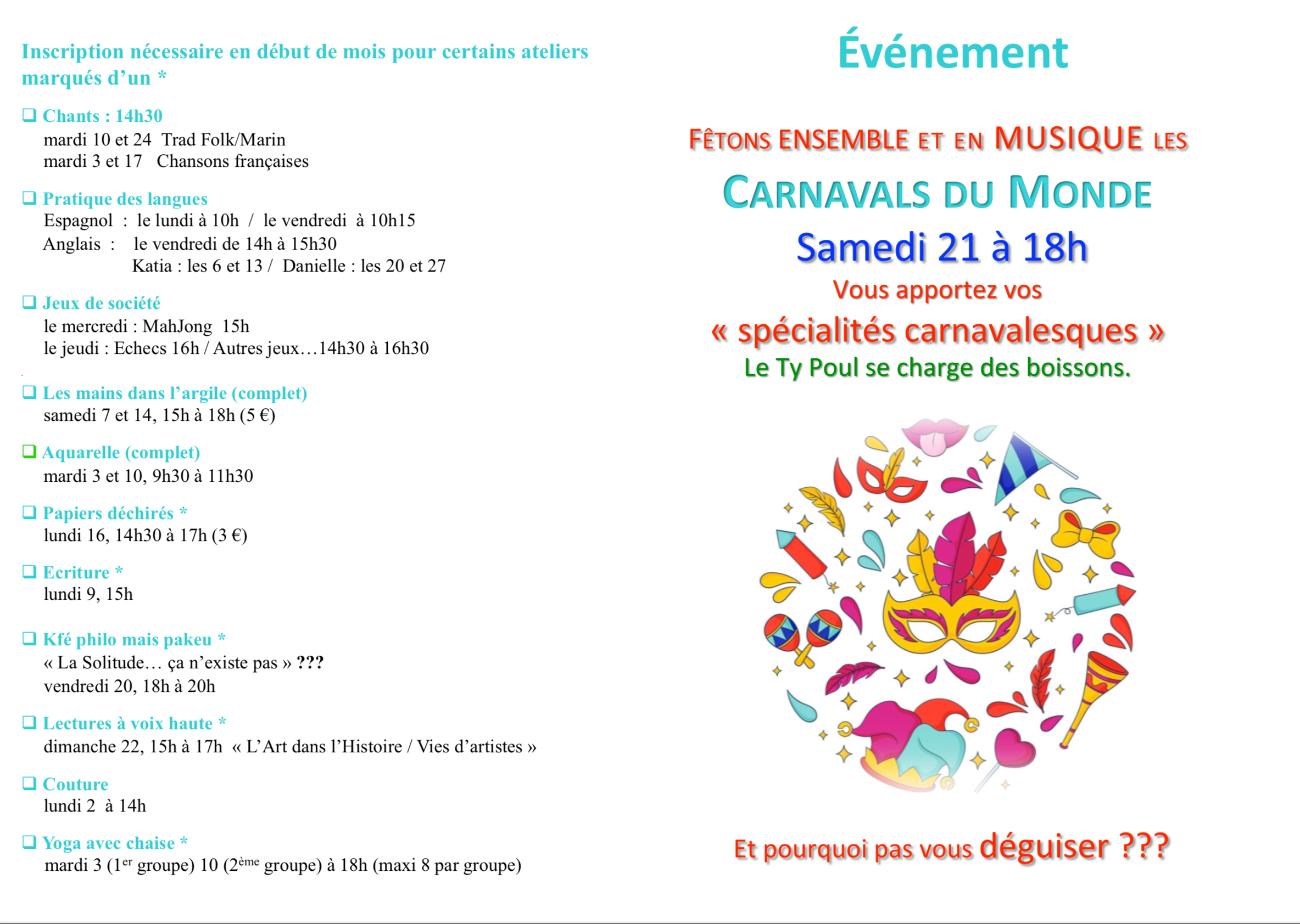 Le programme de Février