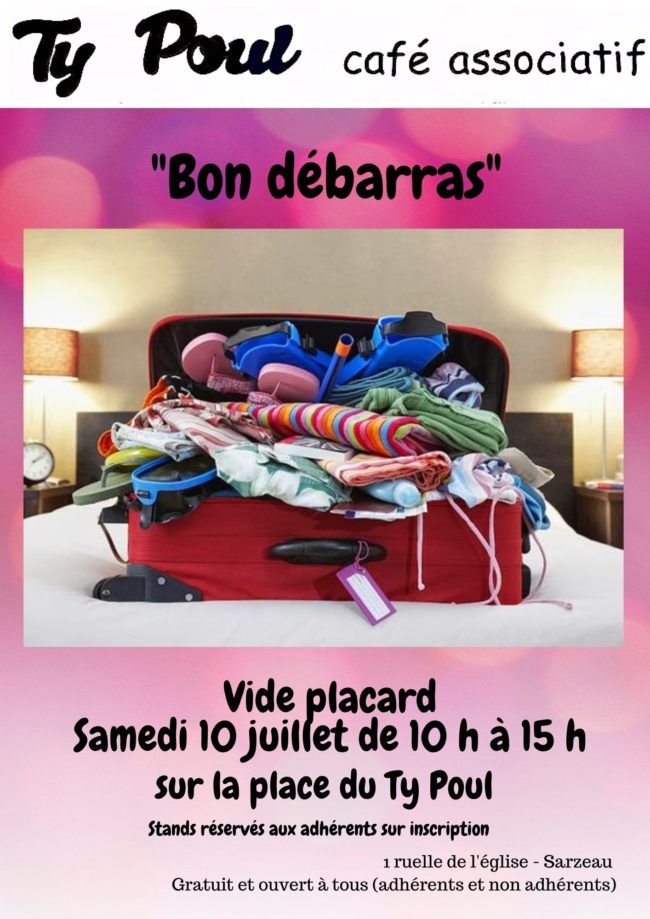 Vide placard Il était temps de changer un peu de couleurs Samedi 10 juillet de 10h à 15h Stands réservés aux adhérents. Il faut s’inscrire bien sûr.