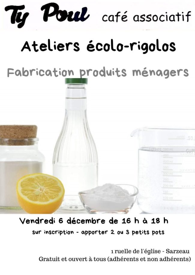 Apprenons à fabriquer nos produits ménagers.Vendredi 6 décembre de 16h à 18h proposé par Marie. On apporte un petit flacon, 2-3 petits pots! sur inscription