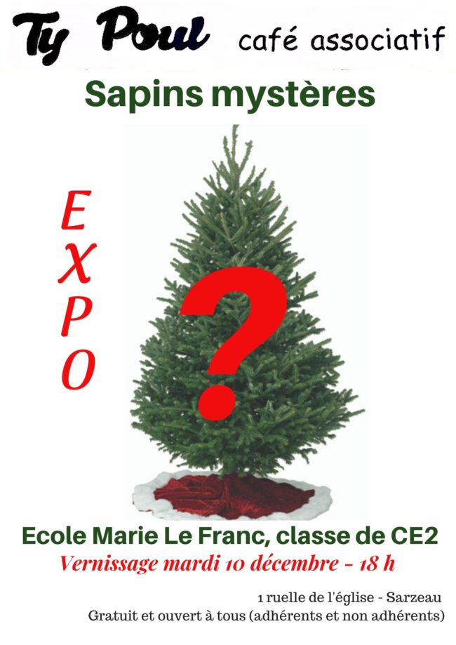 expo des enfantsAdmirons ensemble les « Sapins mystères » créés par les pitchounes de CE2 de l’Ecole Marie Le Franc. C’est le vernissage de l’Expo avec Céline et les parents ! Vernissage le 10 décembre à 18h Gratuit et ouvert à tous