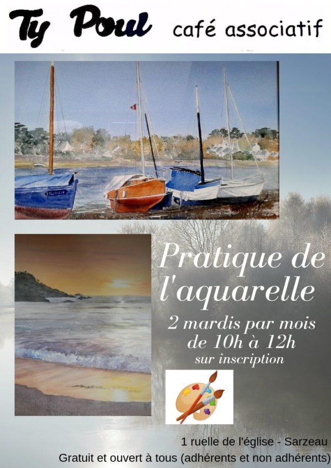atelier aquarelle 2 mardis par mois de 10h à 12h première séance le mardi 1er à 10h , inscrivez-vous car il y a peu de place et n’oubliez pas vos outils !