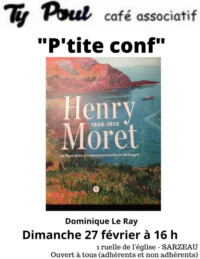 Une « P’tit’ Conf’ « sur le peintre breton Henry Moret à la belle palette chaleureuse. C’est le dimanche 27 à 16h avec Dominique Le Ray. Nous la retrouvons avec joie !