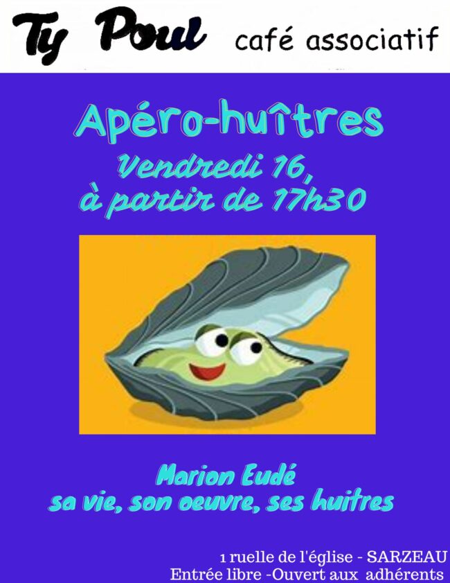 Ptit ‘Conf’Apéro-huîtres surprenant ! vendredi 16, à partir de 17h30, Marion Eudé (c’est la maman de notre Julie de l’été) , ostréicultrice à Bréhuidic, nous expliquera son métier, nous apprendra à bien ouvrir une huître et à bien la déguster…Elle nous réserve une surprise ! Ceux qui n’aiment pas les huîtres sont également bienvenus !