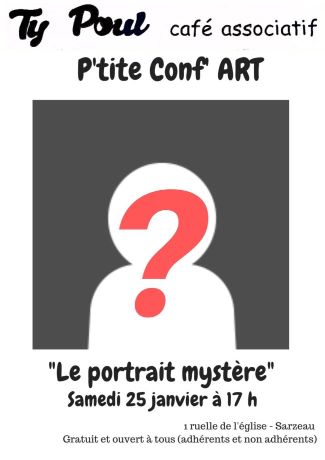 P’tite Conf’ « le portrait mystère« Par Dominique le Ray Le Samedi 25 janvier à 17h Gratuit et ouvert à tous